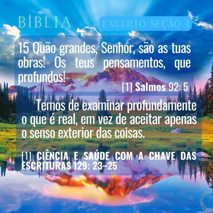 Na Seção 2 vamos investigar e compreender esse versículo de Provérbios, o qual parece enigmático: “Porque, como imagina em sua alma, assim ele é.” (7) Provérbios 23:7 (até ele é)Boa leitura/estudo da Lição Bíblica e boas demonstrações que é o mais importante no processo de compreender a realidade divina, tal como explicada na Ciência Cristã.