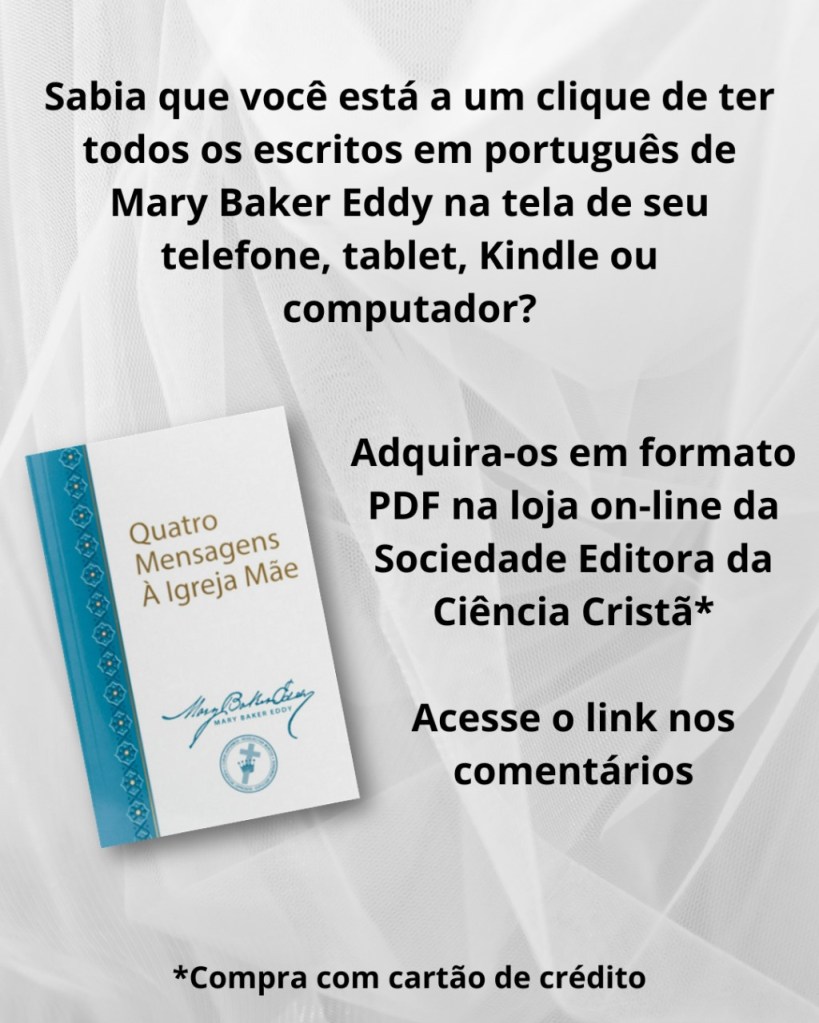 Leia no banner da Sala de Leitura da Ciência Cristã de Porto Alegre, e, acesse o seguinte link para fazer sua aquisição, on-line: Obras de Mary Baker Eddy, PDF