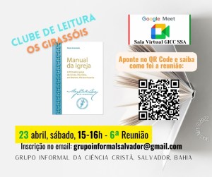 O CLUBE DE LEITURA OS GIRASSÓIS agradece seu interesse e participação! Os soteropolitanos, e, todos os interessados na Ciência Cristã, estão convidados a participarem das próximas reuniões semanais.