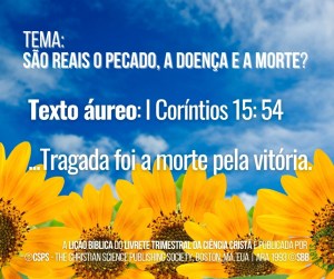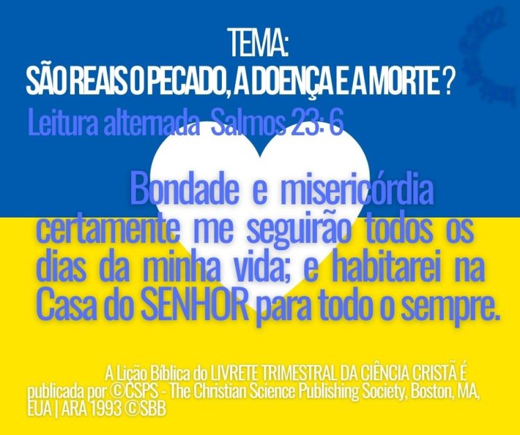 📖📖 O tema a ser estudado, constante na Lição Bíblica, do Livrete Trimestral da Ciência Cristã, de 4 a 10 de abril é: “São reais o pecado, a doença e a morte?”