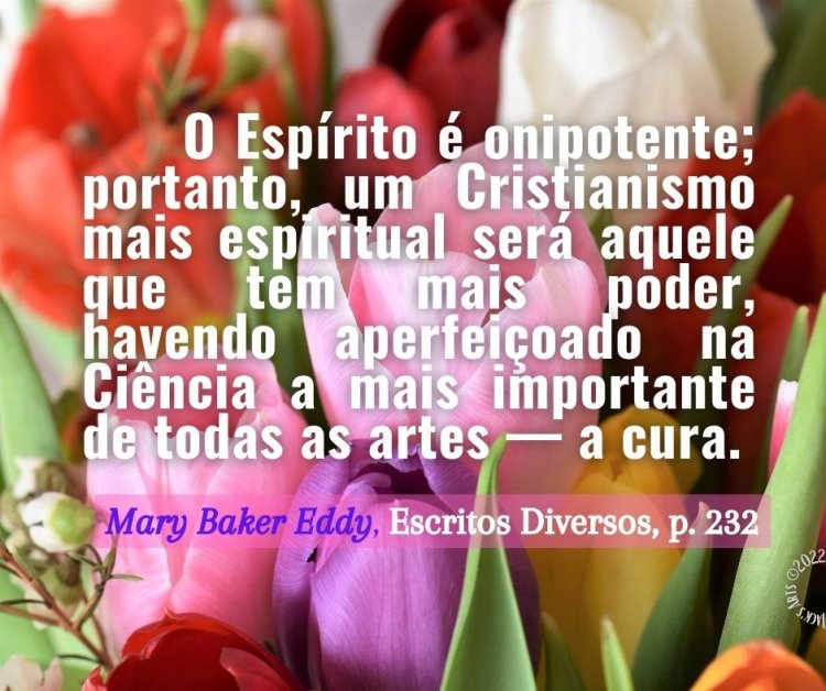 Esta é “… a mais importante de todas as artes”, isto é a arte da cura, conforme leciona nossa amada Líder, Mary Baker Eddy, e todos podem compreende-la e utilizá-la no seu cotidiano:
