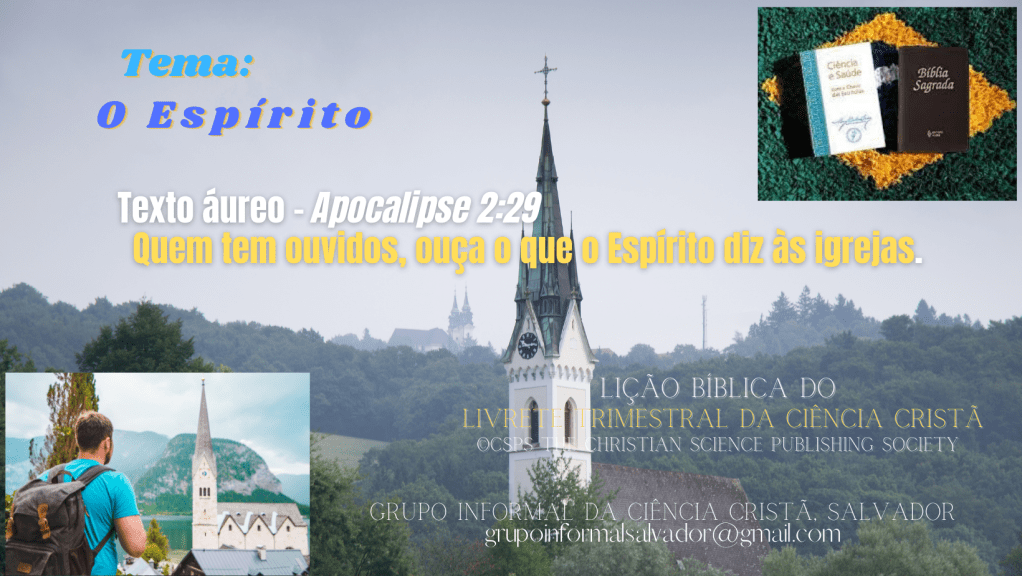 Tags: licao biblica, o Espírito, sete igrejas do Apocalipse, Apocalipse, Ciência Cristã, espiritualidade, Mary Baker Eddy, Livrete Trimestral, consciencia elevada, preparo espiritual, progresso espiritual, cientista cristão, Ciencia Cristiana, Leccion Bíblica, espiritualidad, O Arauto, El Heraldo, audio da licao, espanhol, português, Jackson Guterres, Praticista, Grupo Informal, Salvador, Bahia, Brasil