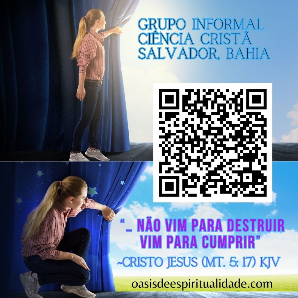 Bora lá iniciarmos um espaço soteropolitano, presencial e público, de livre acesso à prática da espiritualidade, à luz da Ciência Cristã, um oásis do bem, para reunir ativistas da espiritualidade crística e sua cura cristã, atemporal, livre, aberta, visando espraia-la, com humildade, respeito, amor e compaixão pelos becos, favelas, comunidades metropolitanas, praias, ilhas, povos indígenas e quilombos, com aquele senso espiritual do “Ide …” de nosso glorioso Mestre, Cristo Jesus!
