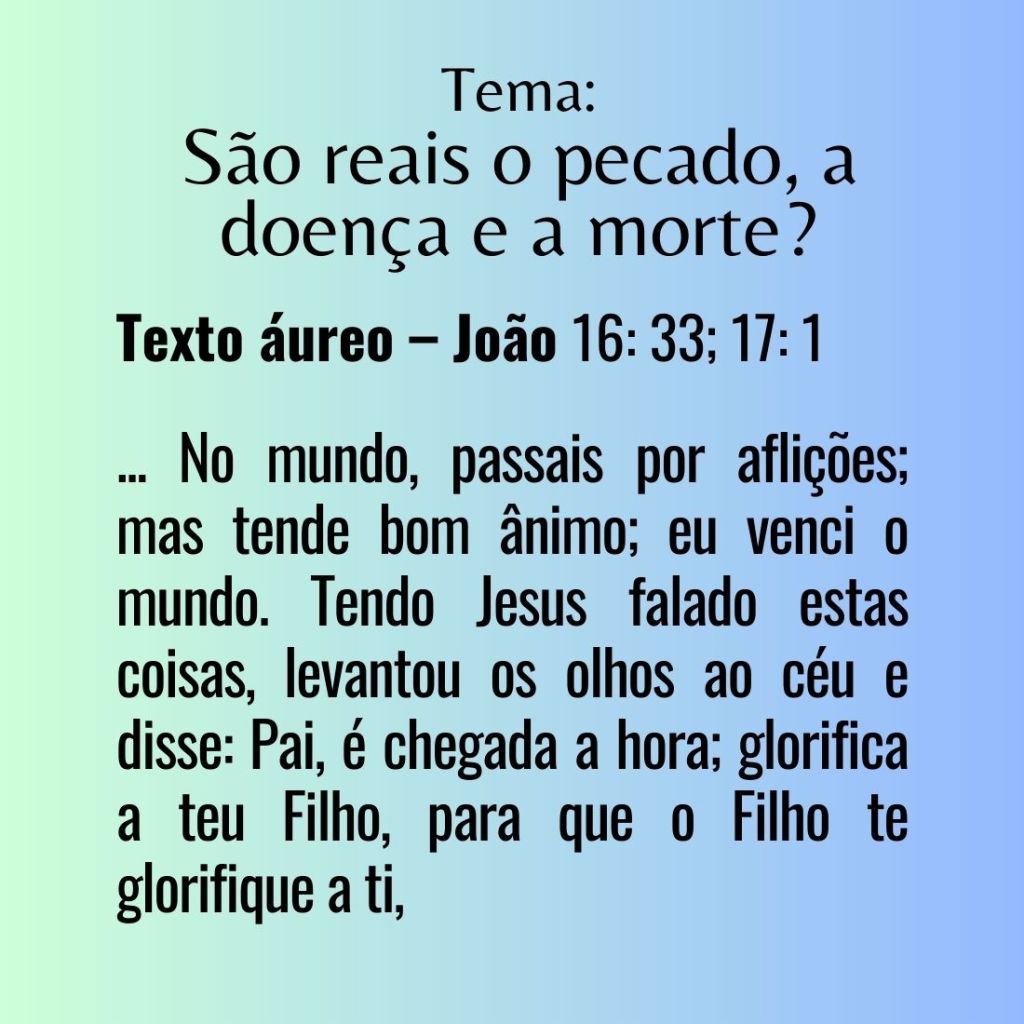 Tema: “São reais o pecado, a doença e a morte?”