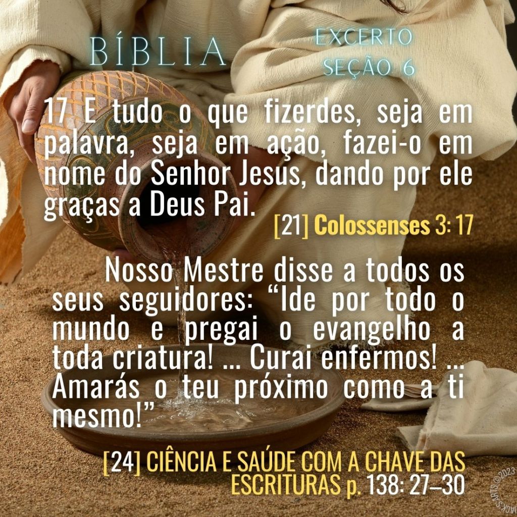 Há uma gratidão especial pela produção dos áudios. É um processo especializado de edição técnica realizada, colaborativamente e com amor por Cientistas Cristãos voluntários, Você pode ler a lição no formato textual, supra disponível em PDF e no Word. Outrossim, diretamente por intermédio de uma assinatura do ©️LIVRETE TRIMESTRAL DA CIÊNCIA CRISTÃ, ou, visitando uma Sala de Leitura da Ciência Cristã. Informe-se aqui para encomendas on-line das literaturas autorizadas: ENCONTRE-NOS