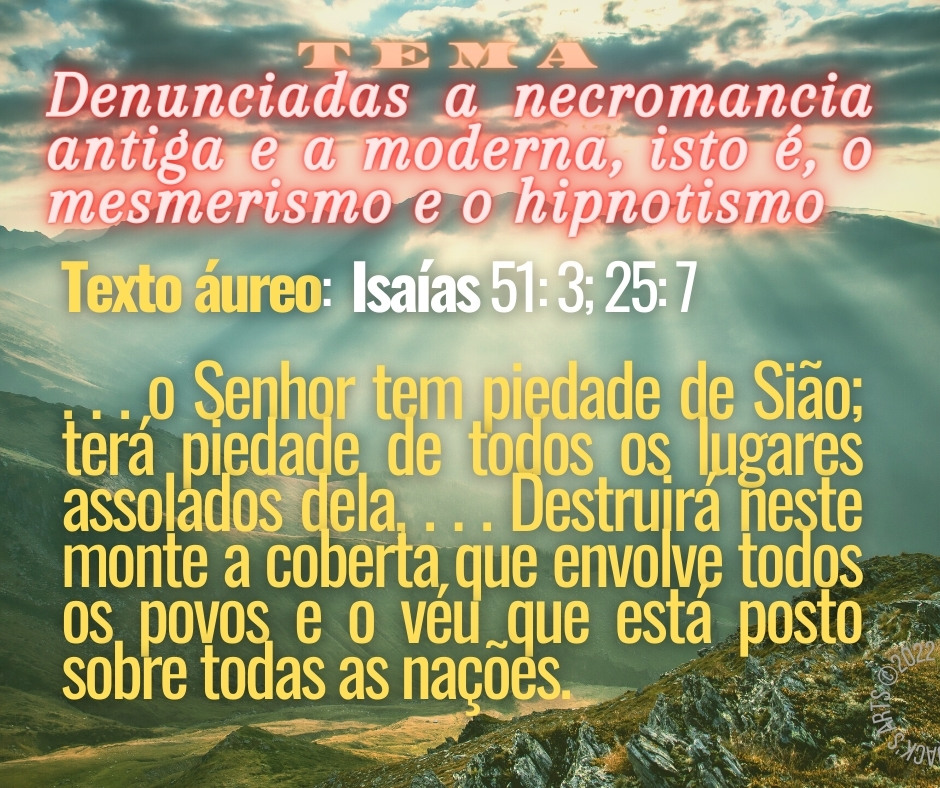 O tema semanal é: “Denunciadas a necromancia antiga e a moderna, isto é, o mesmerismo e o hipnotismo“