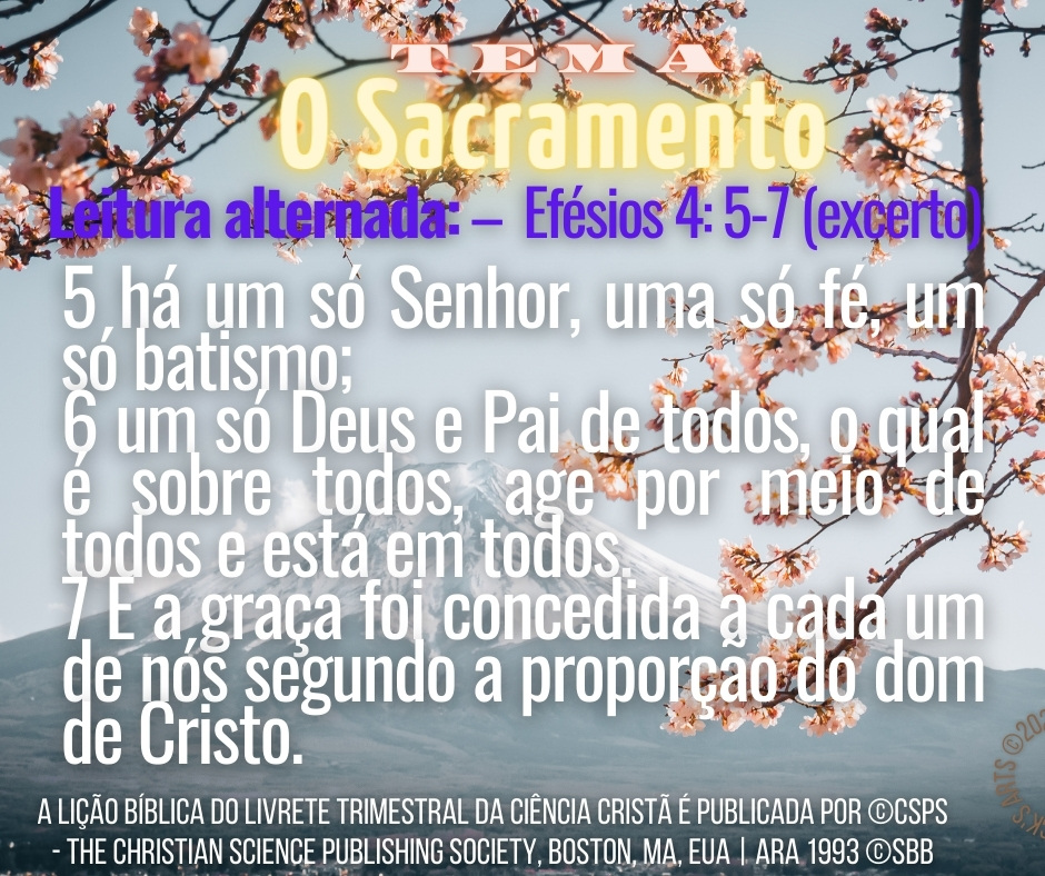 Tags: licao biblica, SACRAMENTO, Mary Baker Eddy, Livrete Trimestral, consciência elevada, mente mortal, progresso espiritual, espiritualidade, cientista cristão, Ciencia Cristiana, cura do paralítico, Leccion Bíblica, espiritualidad, O Arauto, El Heraldo, audio da licao, espanhol, português, Jackson Guterres, Praticista, Grupo Informal, Salvador, Bahia, Brasil