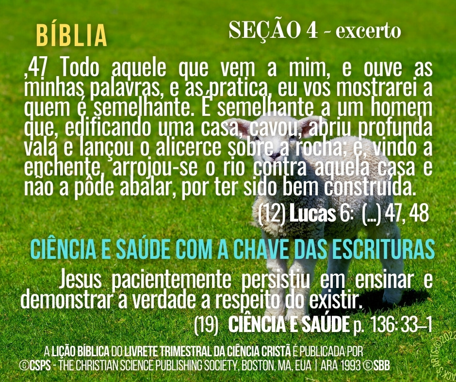 Lição Bíblica é um serviço sanador dA Igreja Mãe, elaborada e disponível no Livrete Trimestral da Ciência Cristã, acesse-a no formato textual num gentil oferecimento da Sociedade Editora da Ciência Cristã ©️CSPS.: