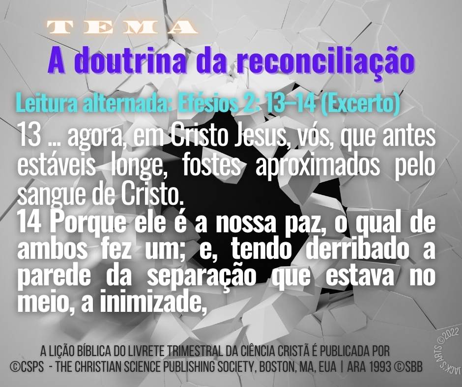 Tags: licao biblica, doutrina, reconciliação, Mary Baker Eddy, Livrete Trimestral, consciência elevada, mente mortal, progresso espiritual, espiritualidade, cientista cristão, Ciencia Cristiana, cura do paralítico, Leccion Bíblica, espiritualidad, O Arauto, El Heraldo, audio da licao, espanhol, português, Jackson Guterres, Praticista, Grupo Informal, Salvador, Bahia, Brasil