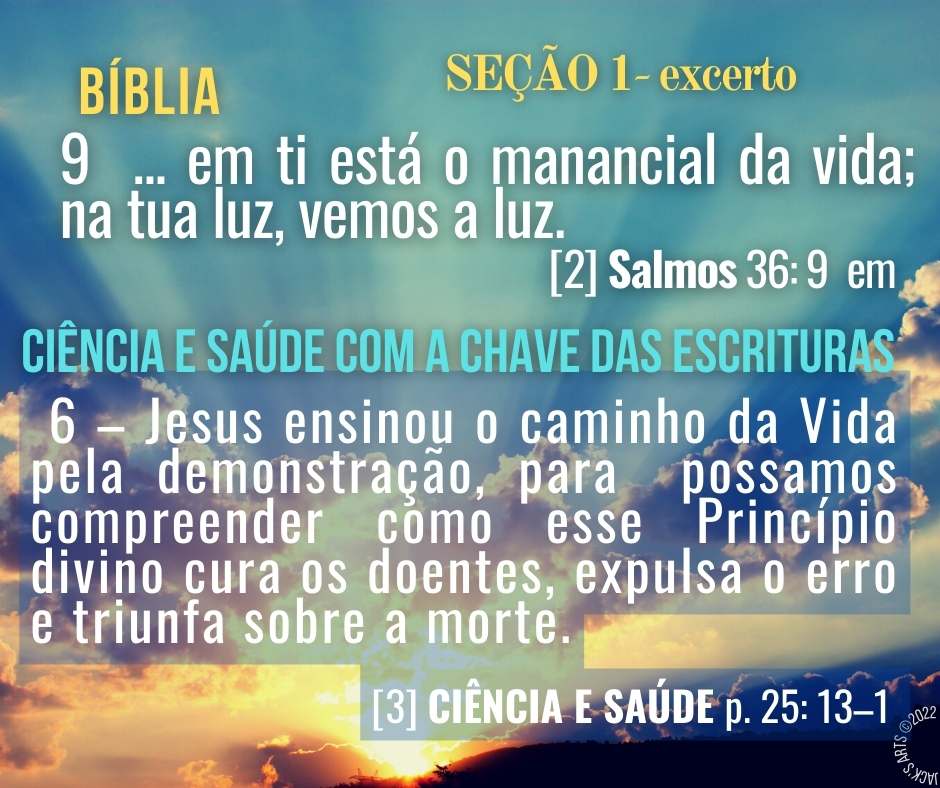 DICA: Esta reflexão sucinta acompanha-se melhor portando=se a lição marcada ou digitada em PDF ou no Word, pois evitei repetir notações, usando apenas a citação como referência e a abreviatura CS para o livro Ciência e Saúde com a Chave das Escrituras
